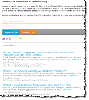 We have added a Spotlight track to highlight some of the most popular content including a Scale talk from James Hamilton, Startup launches hosted by Werner Vogels, a Pace of Innovation talk from Charlie Bell and Khawaja Shams, and a NoSQL / DynamoDB talk from Swami Sivasubramanian.