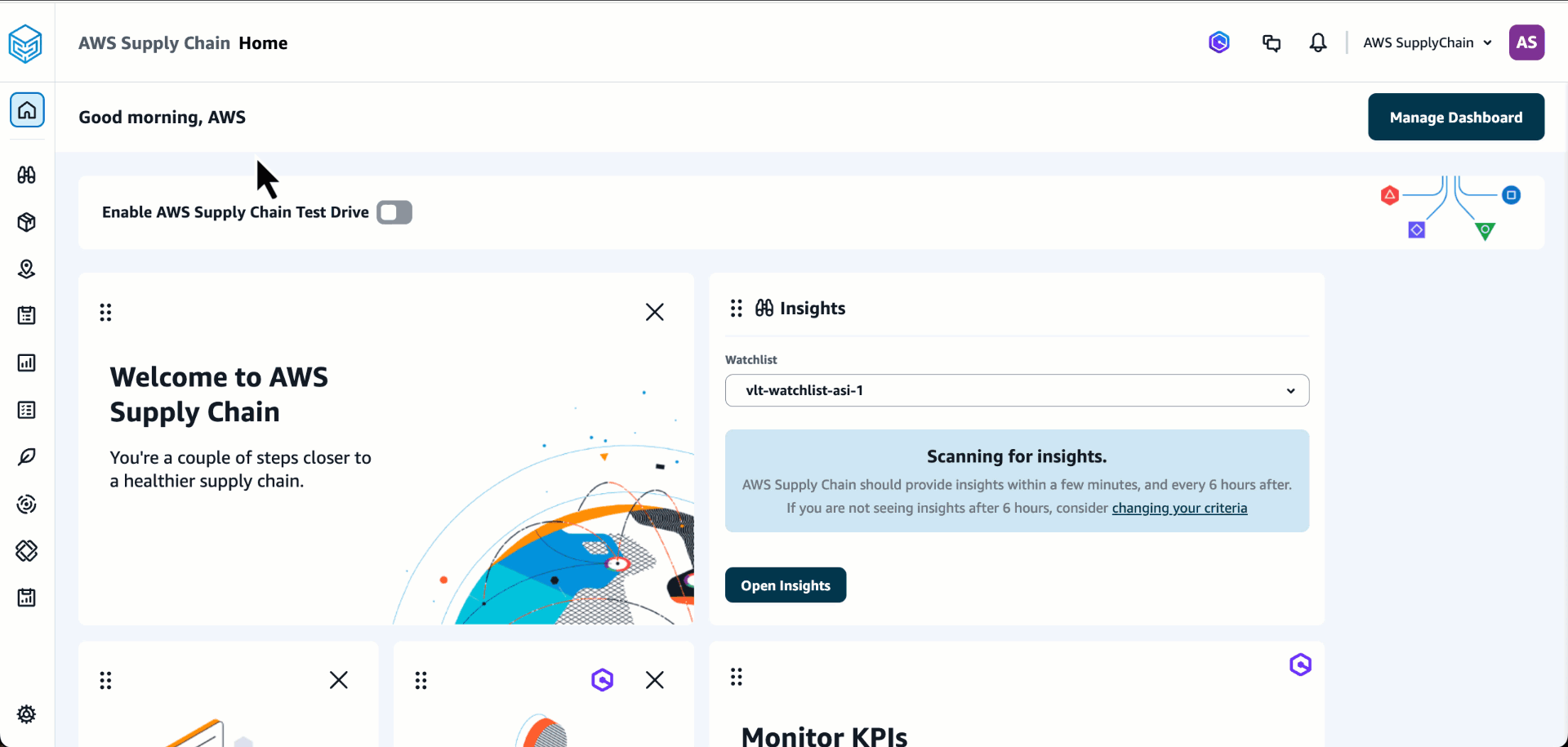 Let me walk you through the features of AWS Supply Chain Analytics.