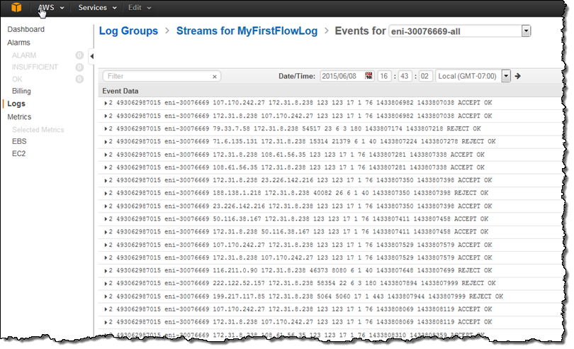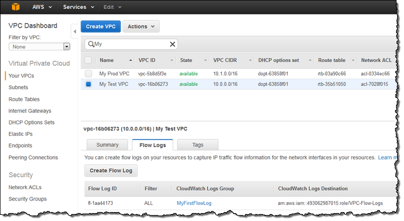 In order to provide better support for this important aspect of network monitoring, we are introducing Flow Logs for the Amazon Virtual Private Cloud (Amazon VPC). Once enabled for a particular VPC, VPC subnet, or Elastic Network Interface (ENI), relevant network traffic will be logged to CloudWatch Logs for storage and analysis by your own applications or third-party tools.