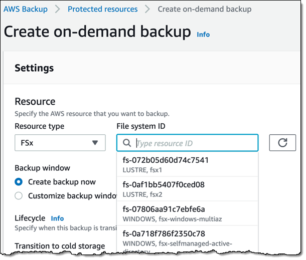 You can now use AWS Backup to create scheduled, policy-driven backup plans for your Amazon FSx file systems. The backups take advantage of Amazon FSx’s existing backup functionality, and can be used for Amazon FSx for Windows File Server file systems, and for persistent Amazon FSx for Lustre file systems that are not linked to S3 or another data repository. To learn more, read AWS Backup Provides Centralized Data Protection Across Your AWS Resources.
