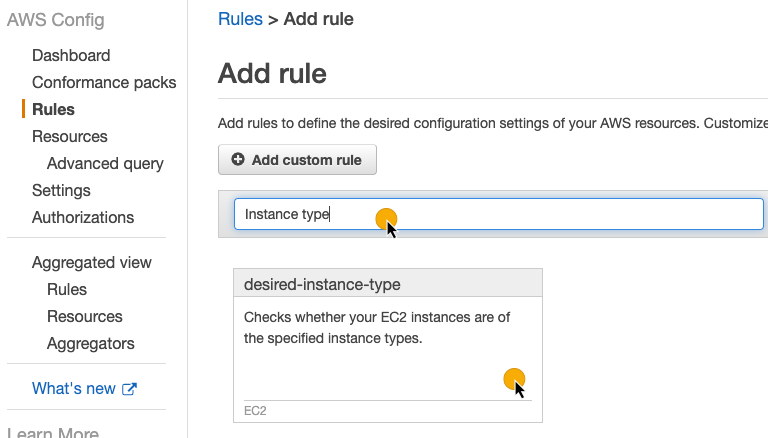 Step 1: From the AWS Config console, chose Rules then Add rule