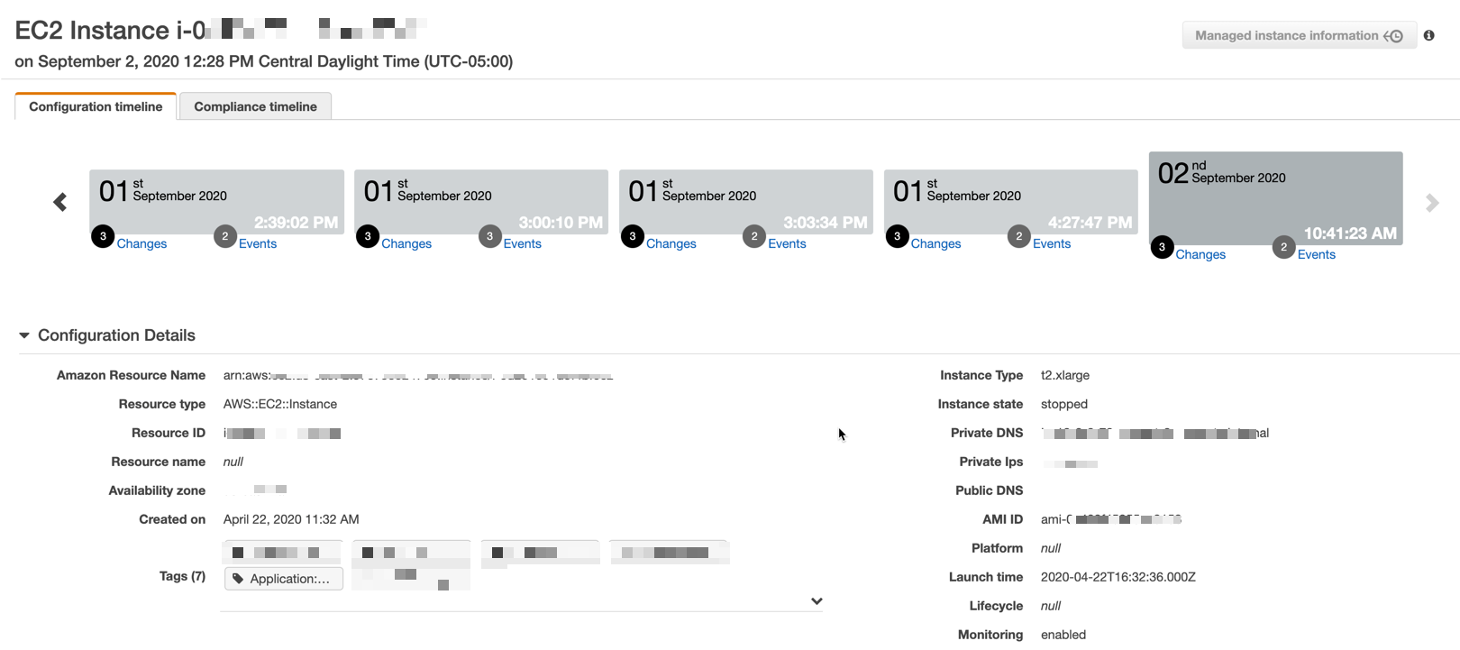 You can gain further insights into the compliance issue by following the links from the Rule name to review the configuration timeline.