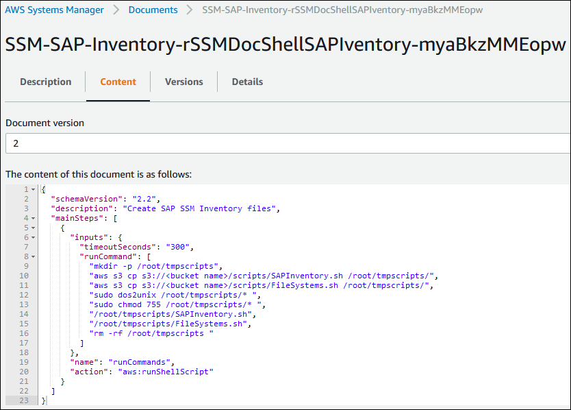 - Both SAP and file system custom metrics were part of the custom Systems Manager Inventory data. In addition, all standard Systems Manager Inventory data for Linux was also included.