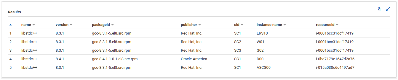 Now that the Systems Manager Inventory is available to Amazon Athena, it is possible to run more complex queries. For example, the following query combines data from the standard AWS Systems Manager Inventory with our custom SAP inventory to get the version of the C++ standard library in our SAP systems: