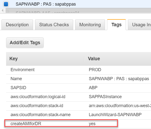 On the source Amazon EC2 instances, create and assign tags to the SAP EC2 instances so that they can be uniquely identified by other AWS services in your AWS account.
