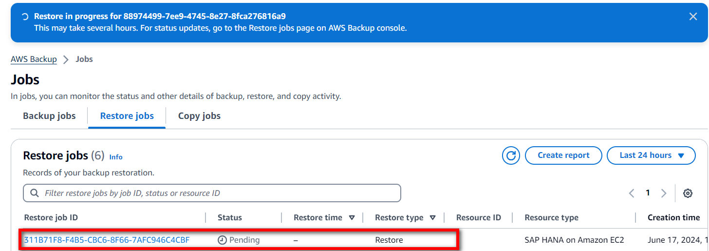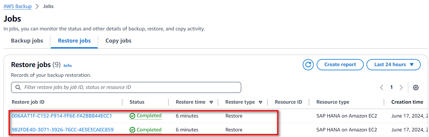 In the steps below we are going to perform an existing HANA database restore in the destination Region using the recovery points we copied from the source Region..