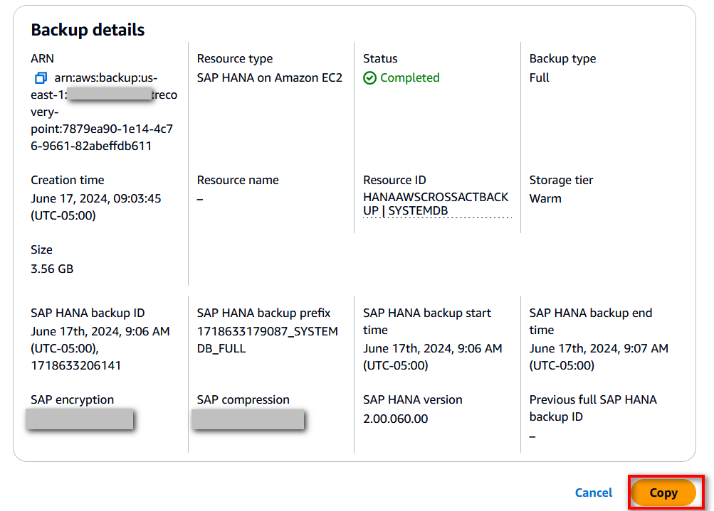 Steps to Enable Cross-Account Copy of SAP HANA Backup