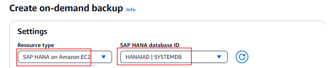 3. Select SAP HANA on Amazon EC2 as Resource type and select your SAP HANA database ID.