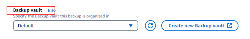For Backup vault, pick either the Default one or use a dedicated one if you have one already.