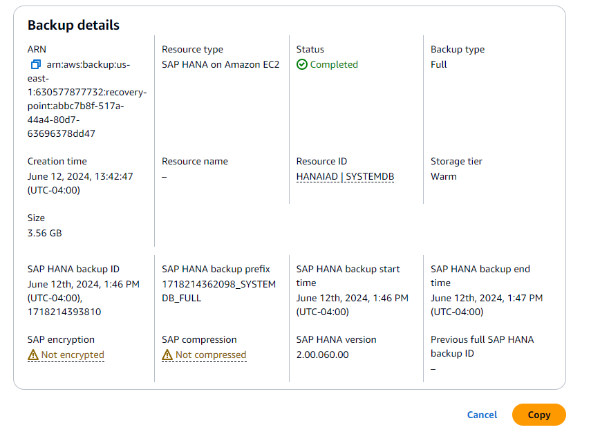 In this blog we will demonstrate how to perform a Cross-Region and Cross-Account backup copy for SAP HANA databases using AWS Backup by triggering an on-demand backup.