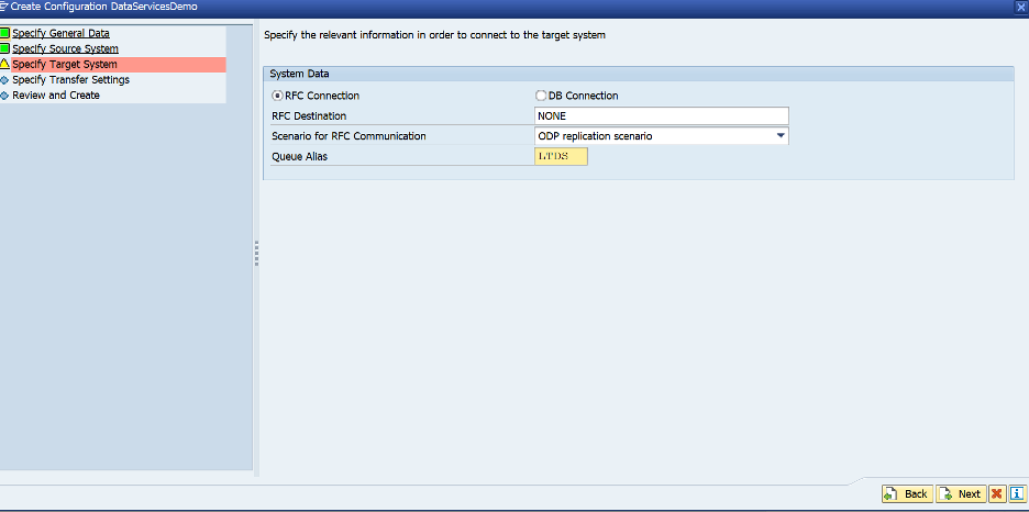 - Choose the Scenario for RFC communication as ODP Replication Scenario.