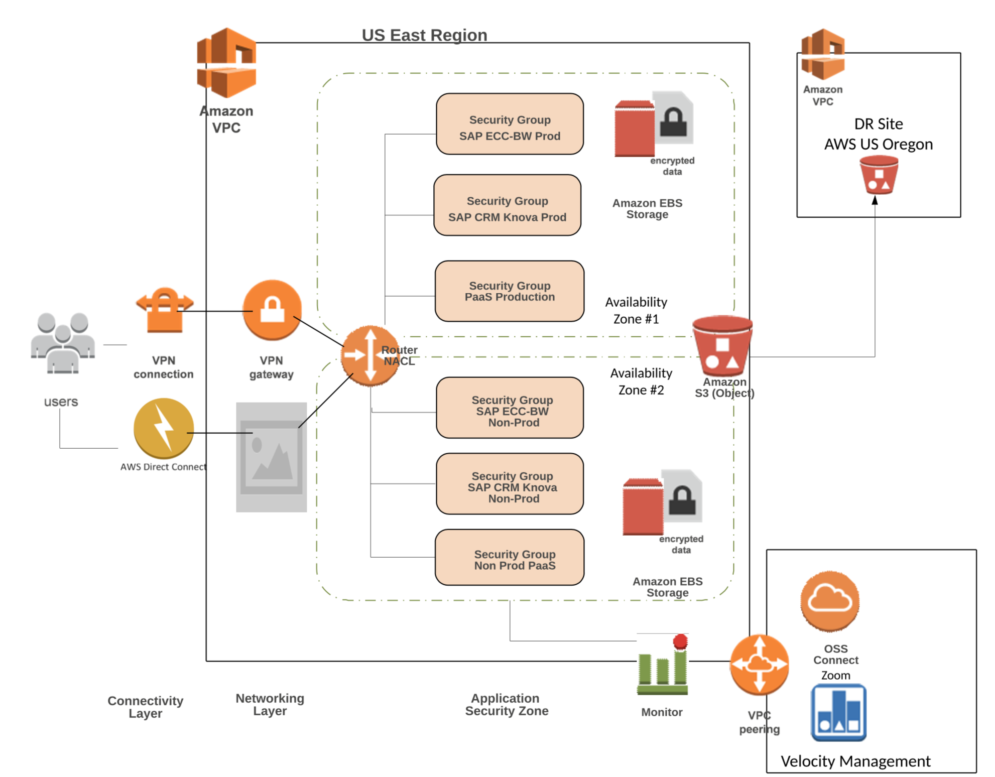 Figure 1: Velocity reference architecture for S/4HANA on AWS. Moving from on-premises to AWS allowed for less downtime and faster performance.