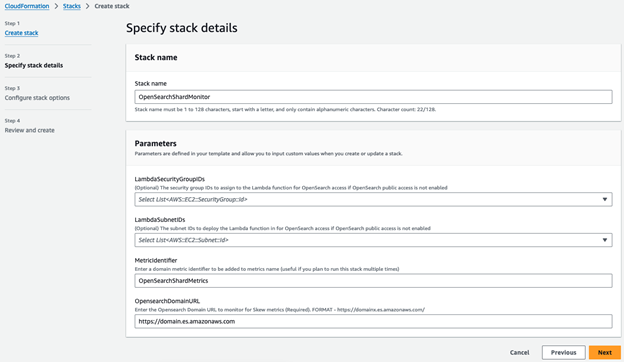 - For OpensearchDomainURL, enter the domain endpoint that you are monitoring.