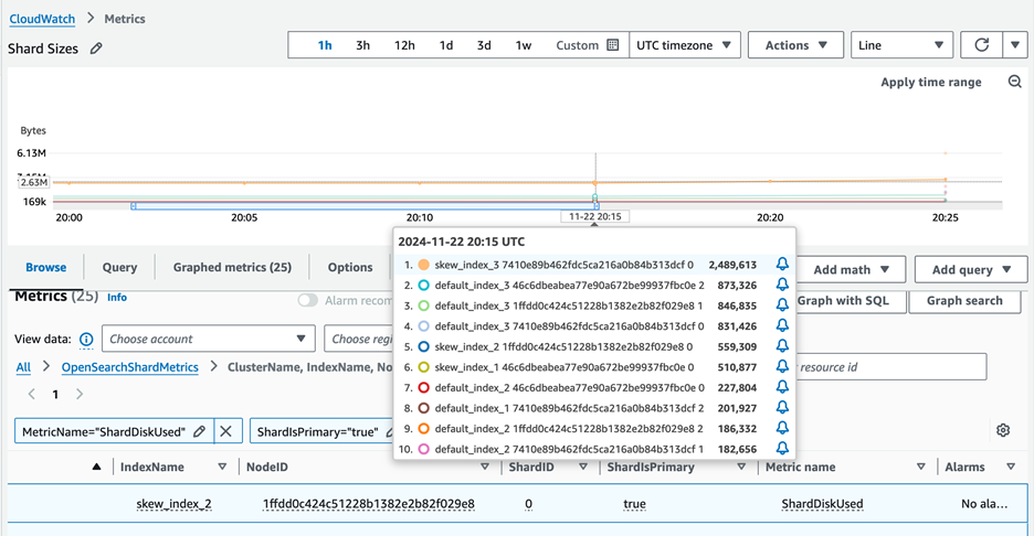 You can hover the mouse over the plotted lines to see the node storage and shard skew information.