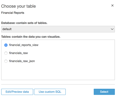financial_reports_view. - Choose Select to confirm.