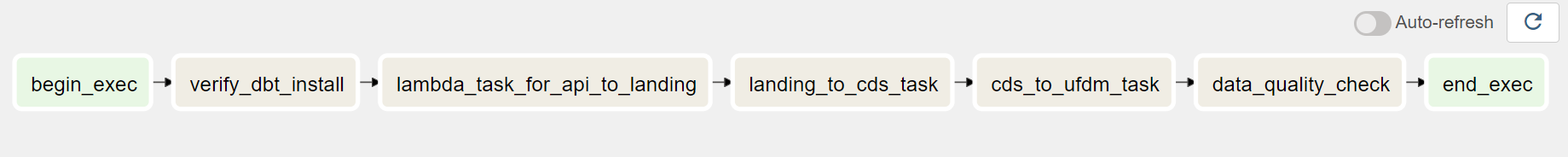 In some instances, we have had to build data pipelines that extend from the source system all the way to the UFDM layer. This can be accomplished using Airflow DAGs, which we discuss further in the next section.
