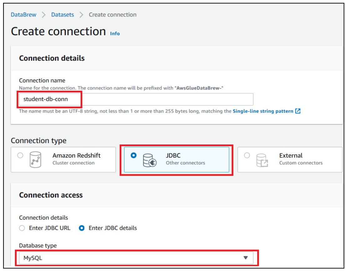 student_db-conn). - For Connection type, select JDBC.