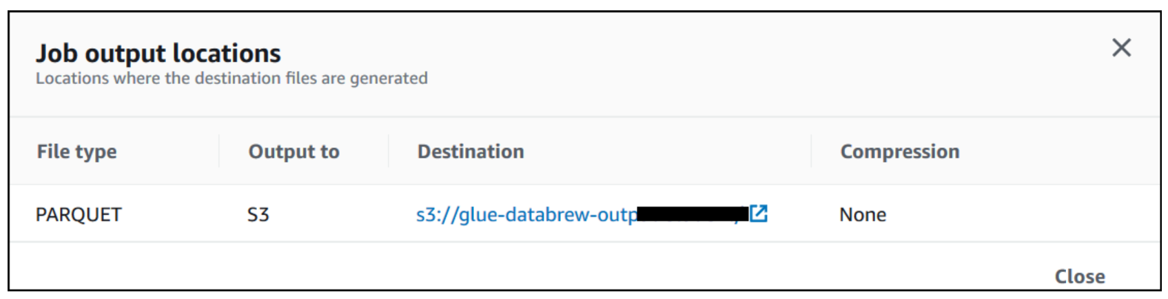 - Choose the Destination link to navigate to Amazon S3 to access the job output.