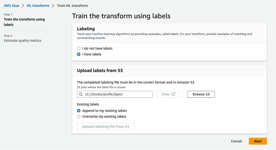 - Select I have labels and choose Browse S3 to upload labels from Amazon S3.