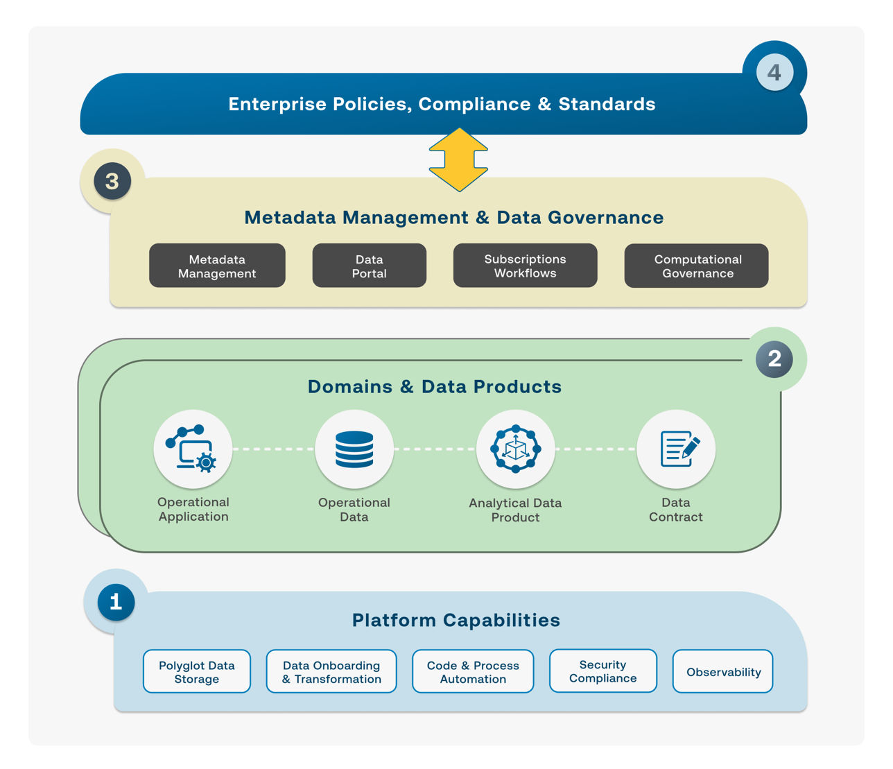 - Managing demand efficiently – Implement a feedback mechanism to manage demand on data products. Track and manage data debt using standard data contract specifications. Most importantly, adopt governance and standards to make sure data products are built and maintained with a long-term perspective, minimizing technical debt.