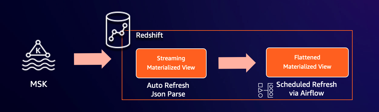 JSON_PARSEto ingest data from MSK topics in Amazon Redshift - Flattening materialized views – Shred and perform transformations as a second step, reading data from the respective streaming materialized view