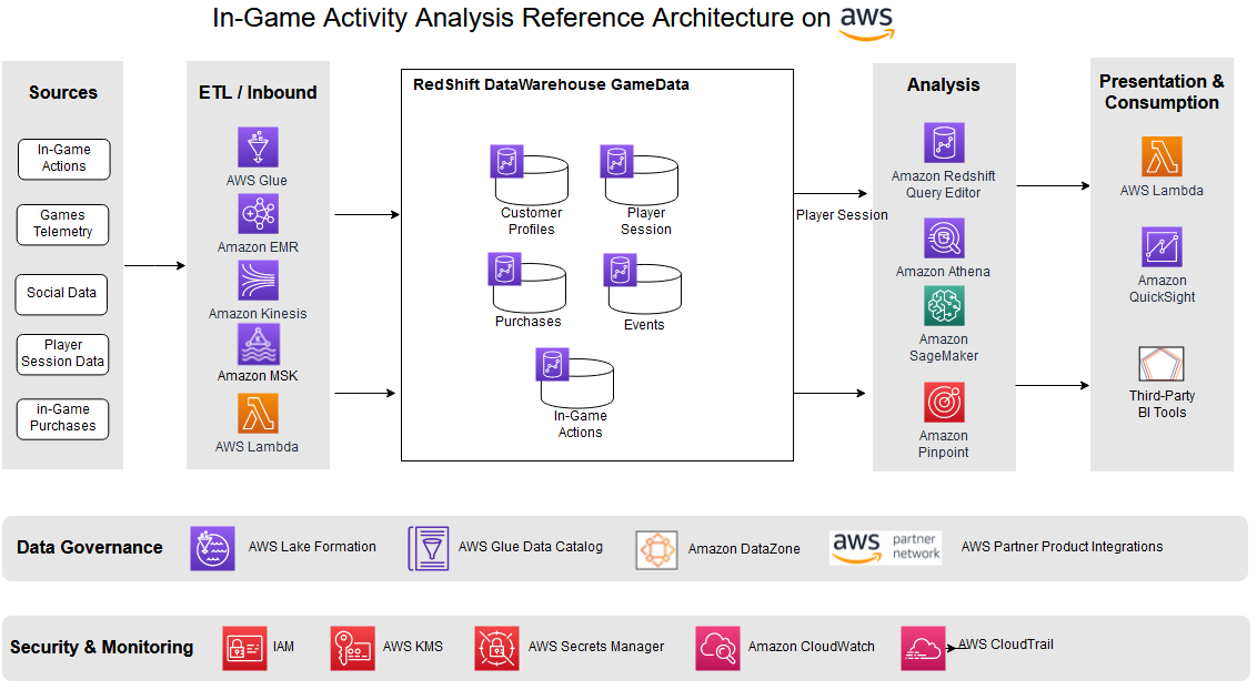 This post provides guidance on how to build scalable analytical solutions for gaming industry use cases using Amazon Redshift Serverless. It covers how to use a conceptual, logical architecture for some of the most popular gaming industry use cases like event analysis, in-game purchase recommendations, measuring player satisfaction, telemetry data analysis, and more. This post also discusses the art of the possible with newer innovations in AWS services around streaming, machine learning (ML), data sharing, and serverless capabilities.