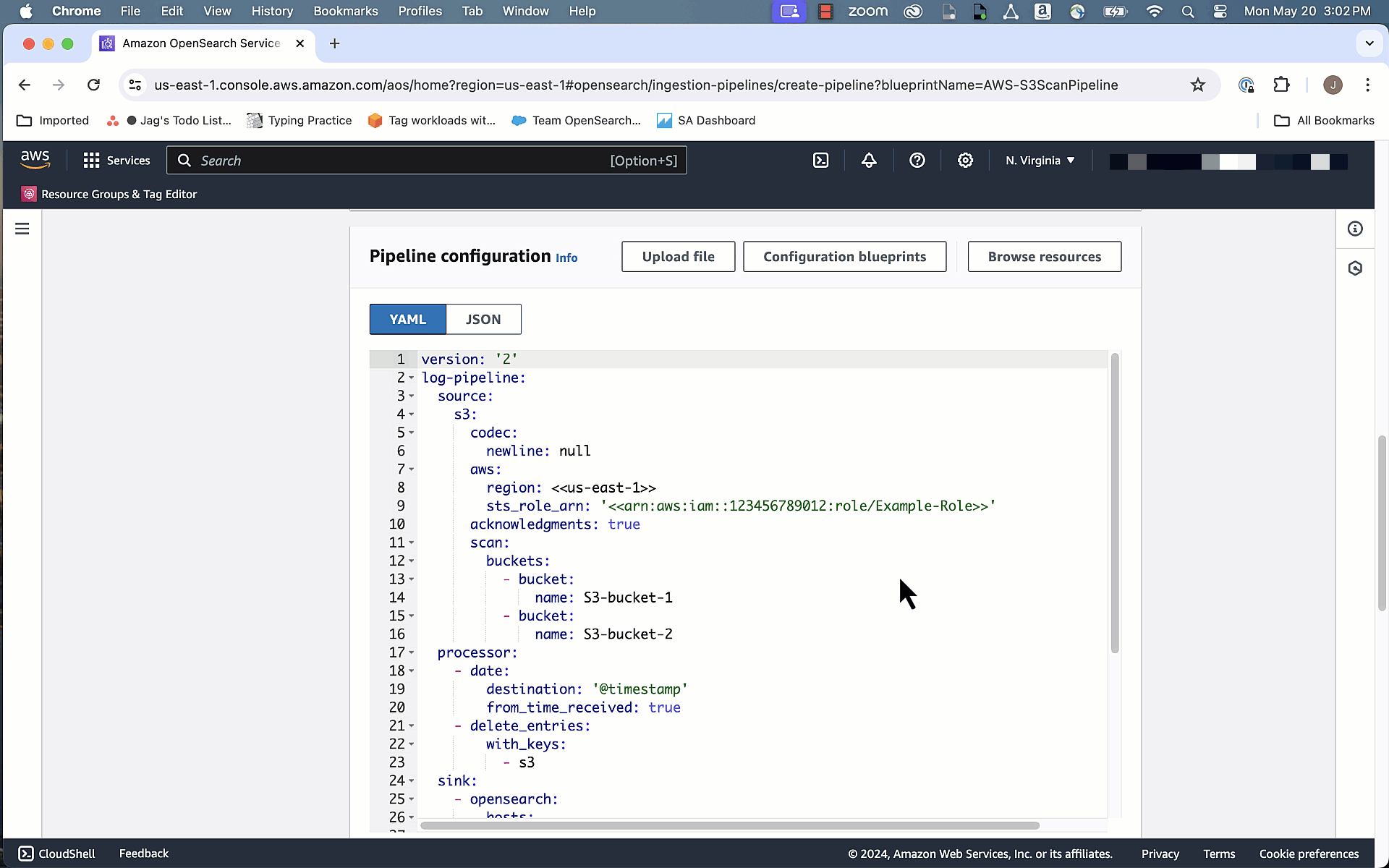 As part of the visual overhaul, OpenSearch Ingestion now offers support for specifying the pipeline configuration in JSON format on the console in addition to the existing YAML support. You can now view the configurations in JSON format in addition to the YAML format and edit them in place.
