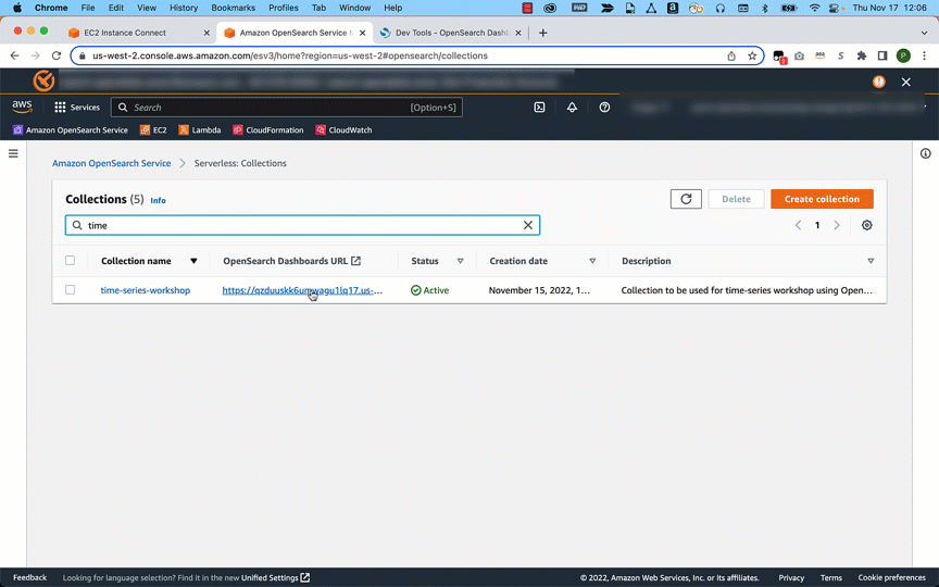 - On the OpenSearch Service console, select your collection.