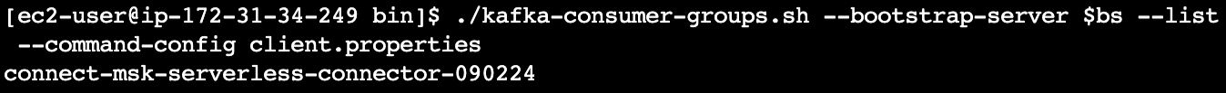 - From your Kafka client, query Amazon MSK to retrieve the Kafka Connect consumer group ID: