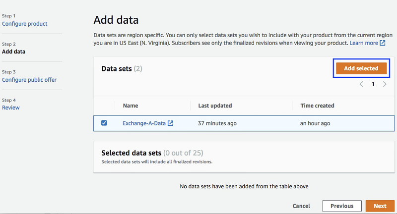 - You must be a registered provider on AWS Data Exchange. Only eligible and registered providers can publish data products on AWS Data Exchange. Eligible providers must agree to the Terms and Conditions for AWS Marketplace under a valid legal entity domiciled in the United States or a member state of the EU, supply valid banking and taxation identification, and be qualified by the AWS Data Exchange business operations team. For more information, see Providing Data Products on AWS Data Exchange.