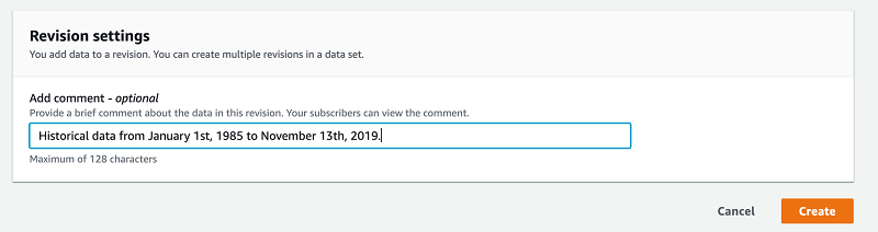 You have now created a new data set, added your first revision to this data set with historical data, finalized the revision, and published a product using this finalized revision. This product is available for subscribers to purchase within a few hours after publishing.
