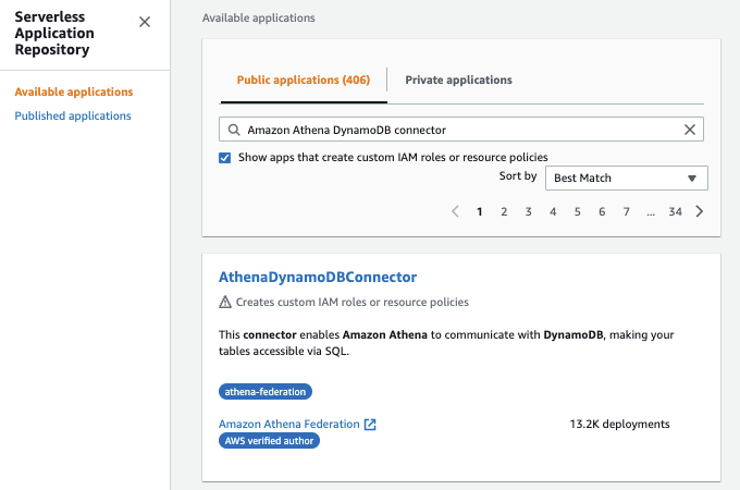 Deploy AthenaDynamoDBConnector using AWS Serverless Application Repository
