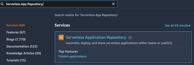 - Open the Serverless Application Repository.