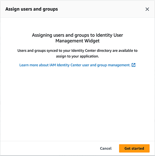 - In the pop-up window, if this is the first time assigning users and groups, choose Get started.