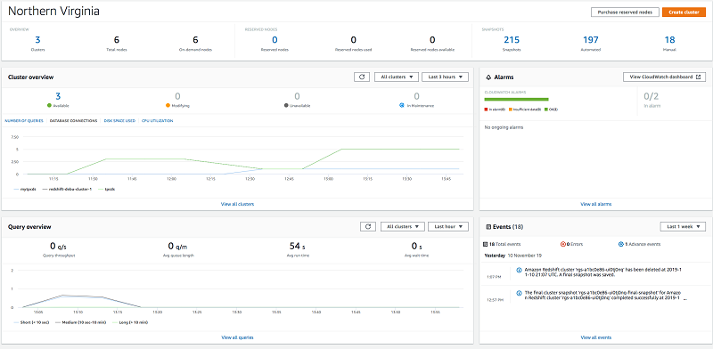 With the existing console, you can navigate to different pages to get a glance of the health and performance of Amazon Redshift clusters. The new dashboard provides unified visibility to the health and performance of your clusters.