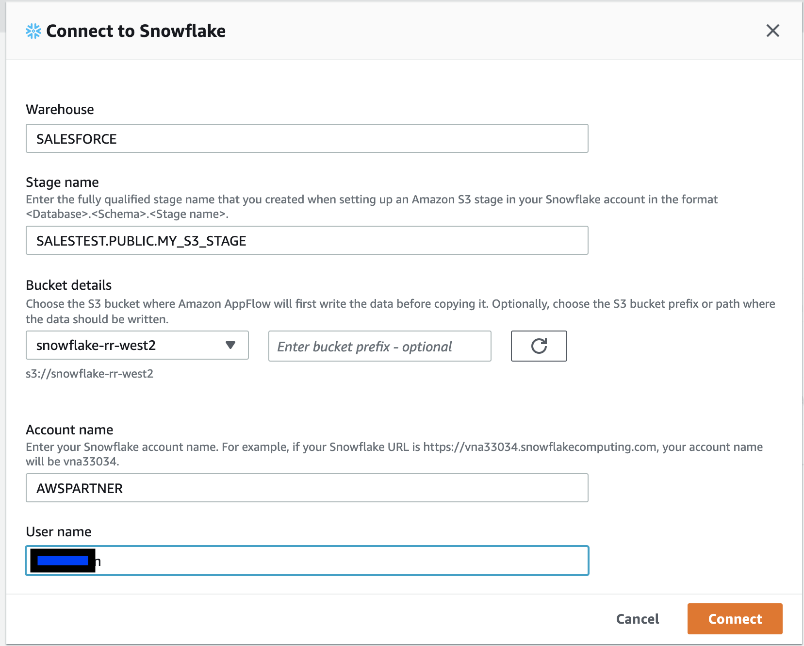 Snowflake-blog. - Leave the rest of the fields as default and choose Connect.