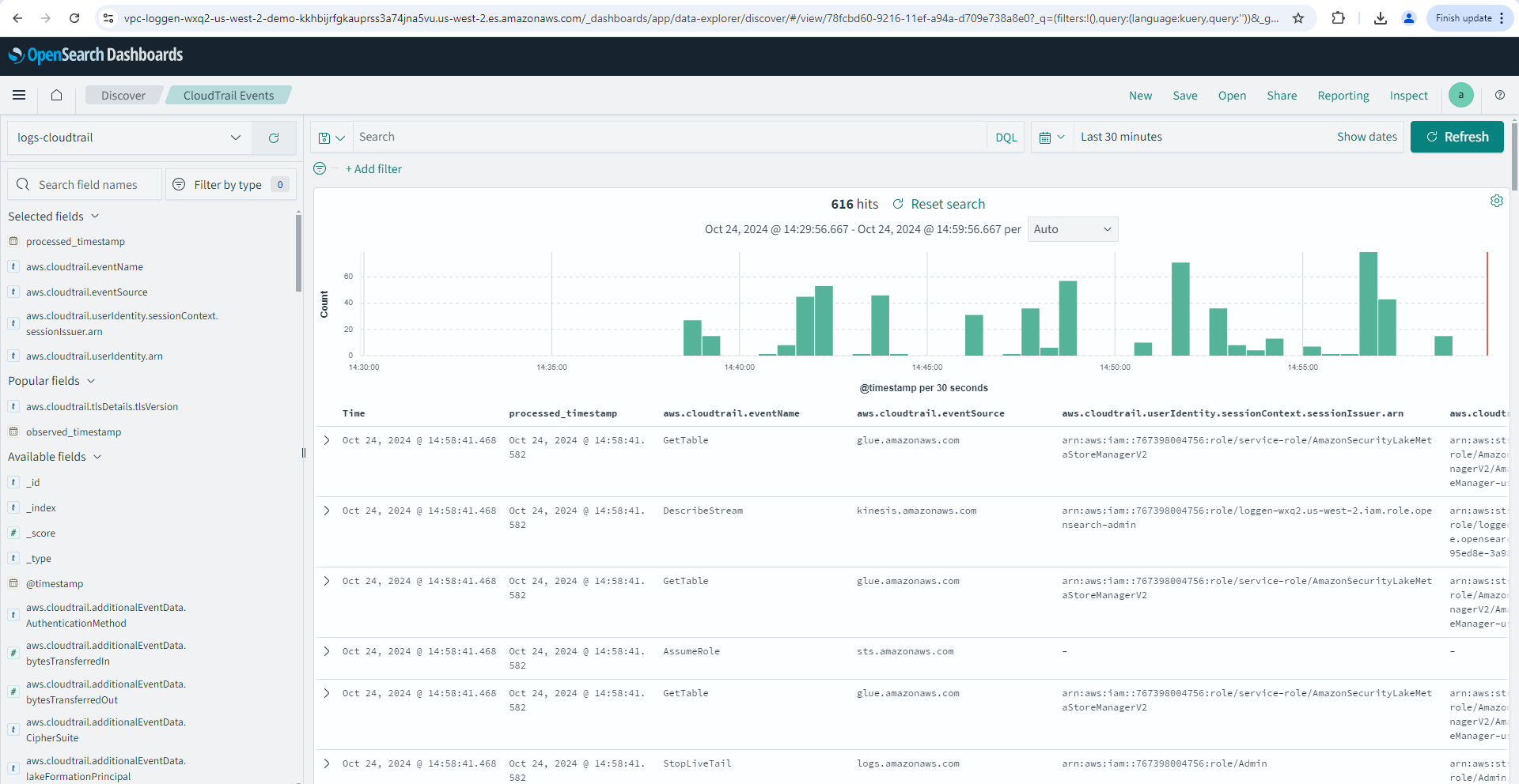 When your pipeline enters the Active state, you’ll see logs begin to populate in your OpenSearch domain or serverless collection.