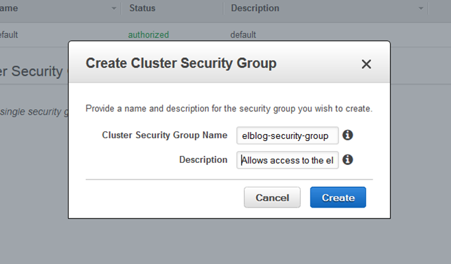 Note: Cluster Security Groups are only necessary in EC2 Classic accounts when you are running outside of a VPC. For VPC by Default accounts you will want to create a VPC Security Group with the same Inbound Rules through port 5439.