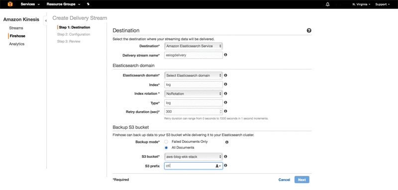 Create a Kinesis Firehose delivery stream