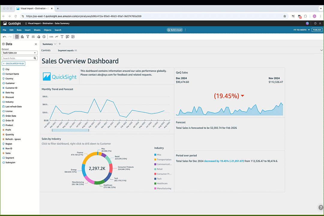 At QuickSight, we’ve always prioritized ease of use—a quality our customers love. Although we continually add new customization options for creating stunning dashboards and reports, we recognize that these features can sometimes increase design time as users explore new controls. To address this, we are excited to introduce Import Visuals, a powerful new productivity feature that balances customization with efficiency.