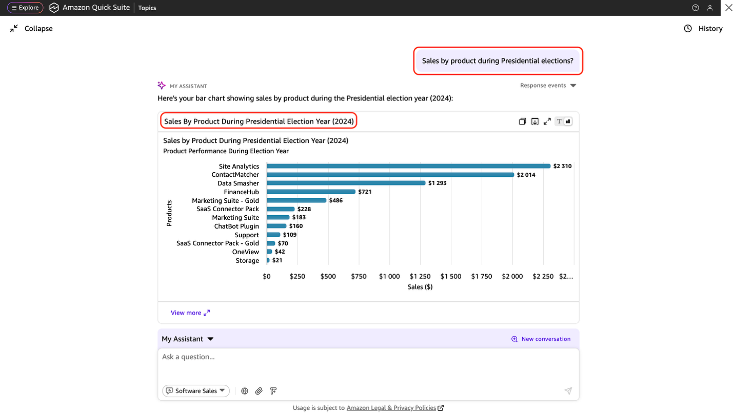 These aren’t always encoded directly in the data model, yet we still want the topic to understand them consistently. This is where custom instructions come in: authors can guide how Quick Sight interprets certain terms, even if the underlying dataset doesn’t contain explicit filters or tags for those concepts. Consider typical sales-oriented queries: