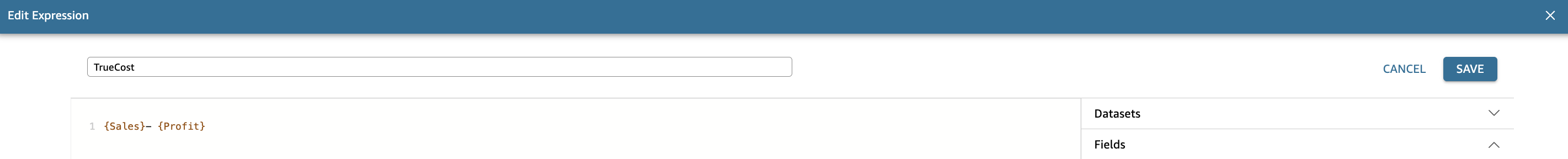 TrueCost.) - Enter the calculation formula. (In our example, we enter (Sales)- (Profit).)