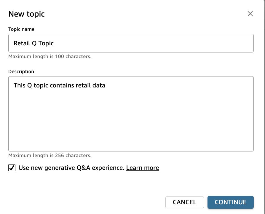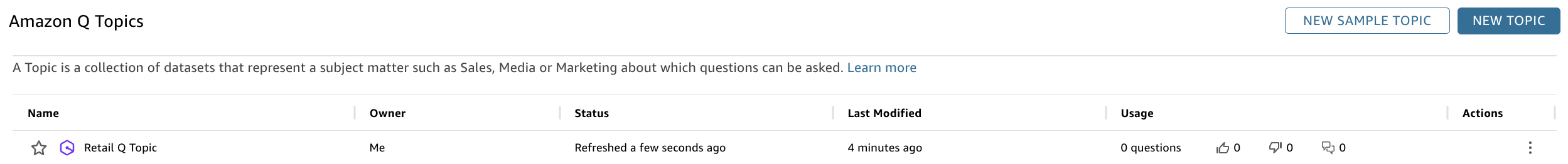 After creation, you can find your new topic listed in the Amazon Q Topics section.