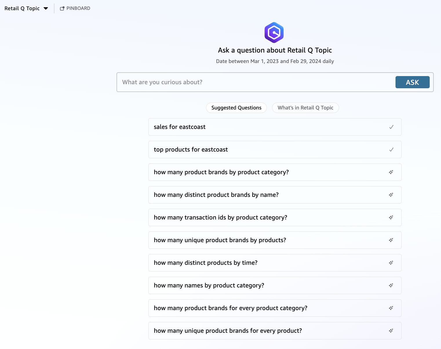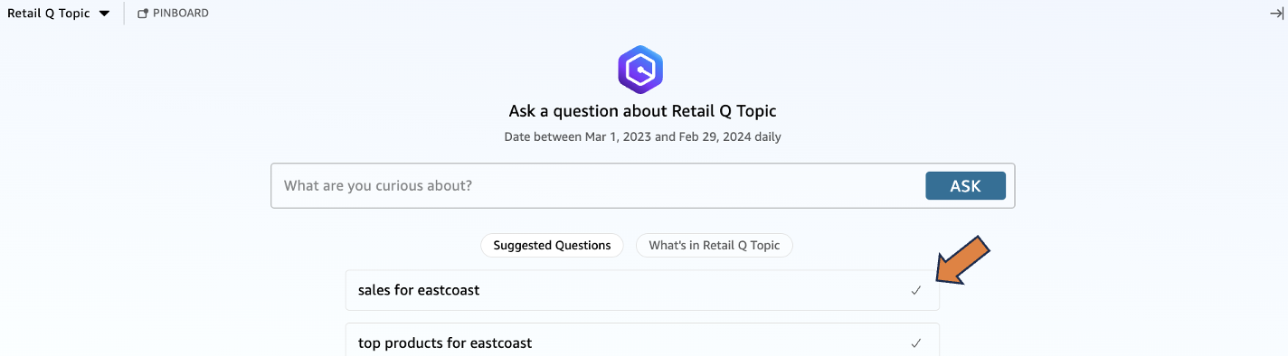 - Answering business questions with Amazon QuickSight Q