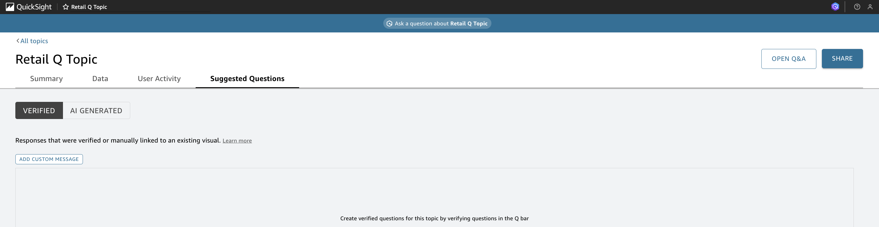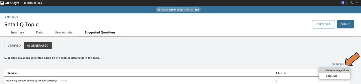 - On the Suggested Questions tab, choose Verified.