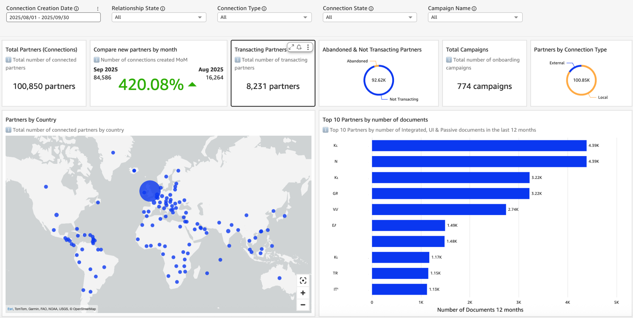 By tracking and analyzing these transaction metrics, the dashboard offers crucial visibility into Tradeshift’s market performance and validates its value proposition. This high-level view of financial activity serves as a key indicator of both platform success and customer engagement, making it an essential resource for strategic decision-making and business health assessment.