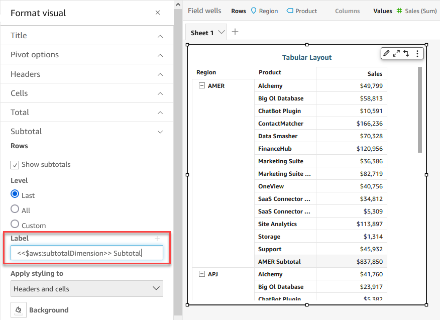 Introducing advanced formatting options for pivot table totals and subtotals in Amazon QuickSight