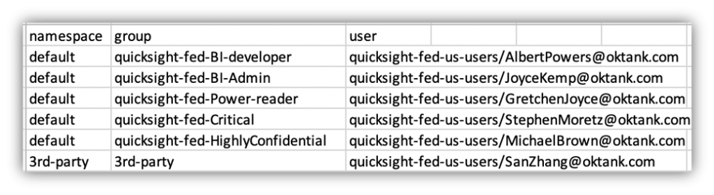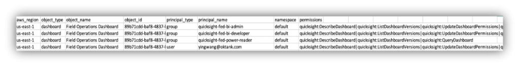 - Based on the file in Amazon S3 that contains user-group information, dataset information, QuickSight assets access permissions information, as well as dashboard views and user login events from the CloudTrail logs, five Amazon Athena tables are created. Optionally,