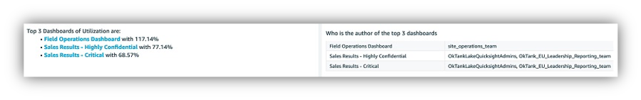 - Create visuals – For example, you create an insight to display the top three dashboard views by reader and a visual to display the authors of these dashboards.