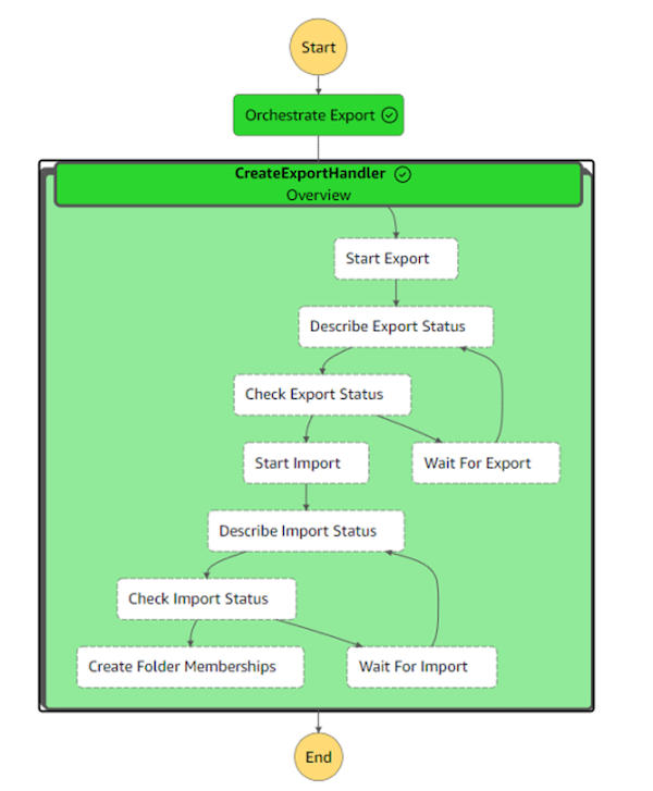 To automate the process of moving and deploying dashboards across our different environments (developing, staging, and production), we developed an AWS Step Functions state machine that provides a visual workflow to run QuickSight Assets as Bundle API calls. This approach allows us to create a dashboard once and efficiently manage all updates. The following figure shows a sample run of our state machine that deploys the dashboard.
